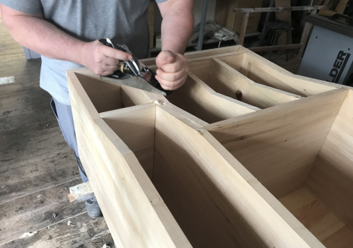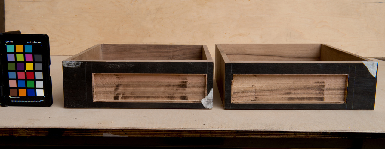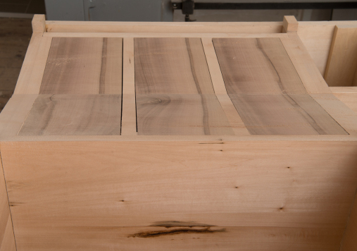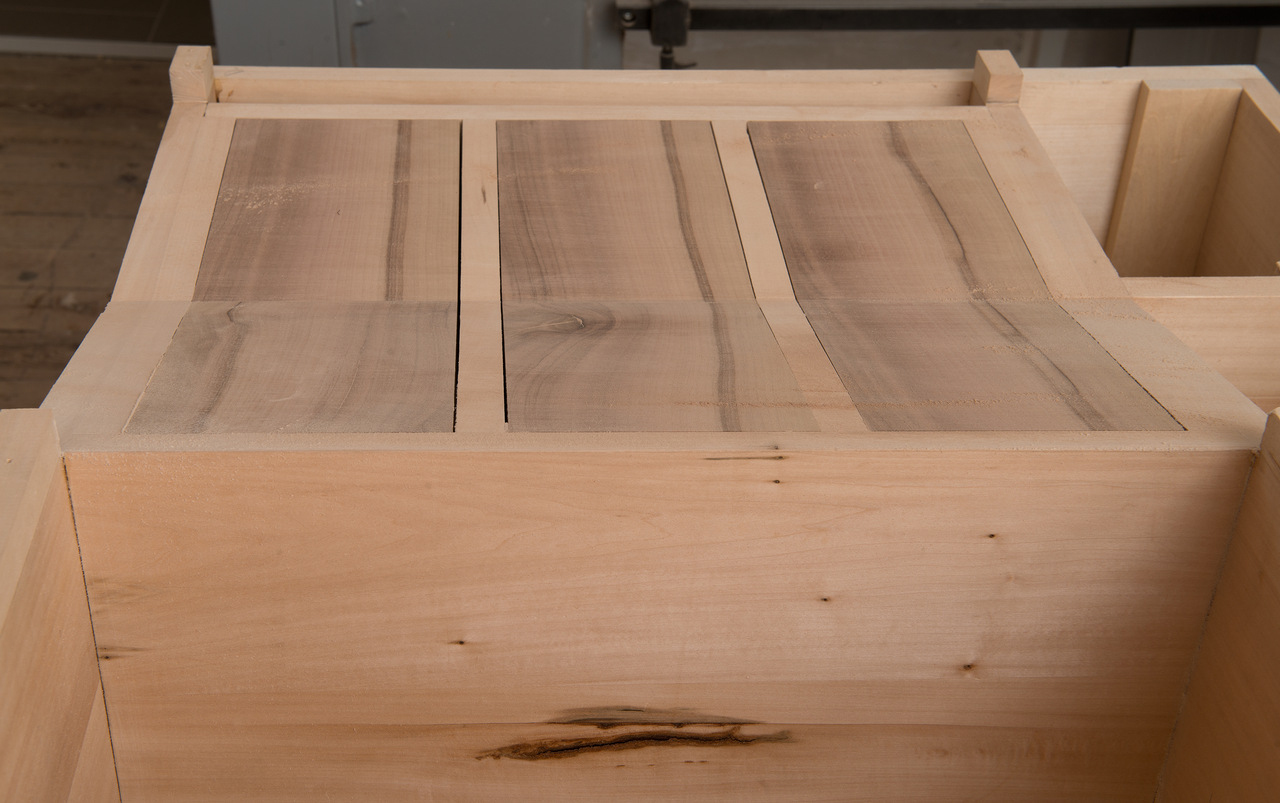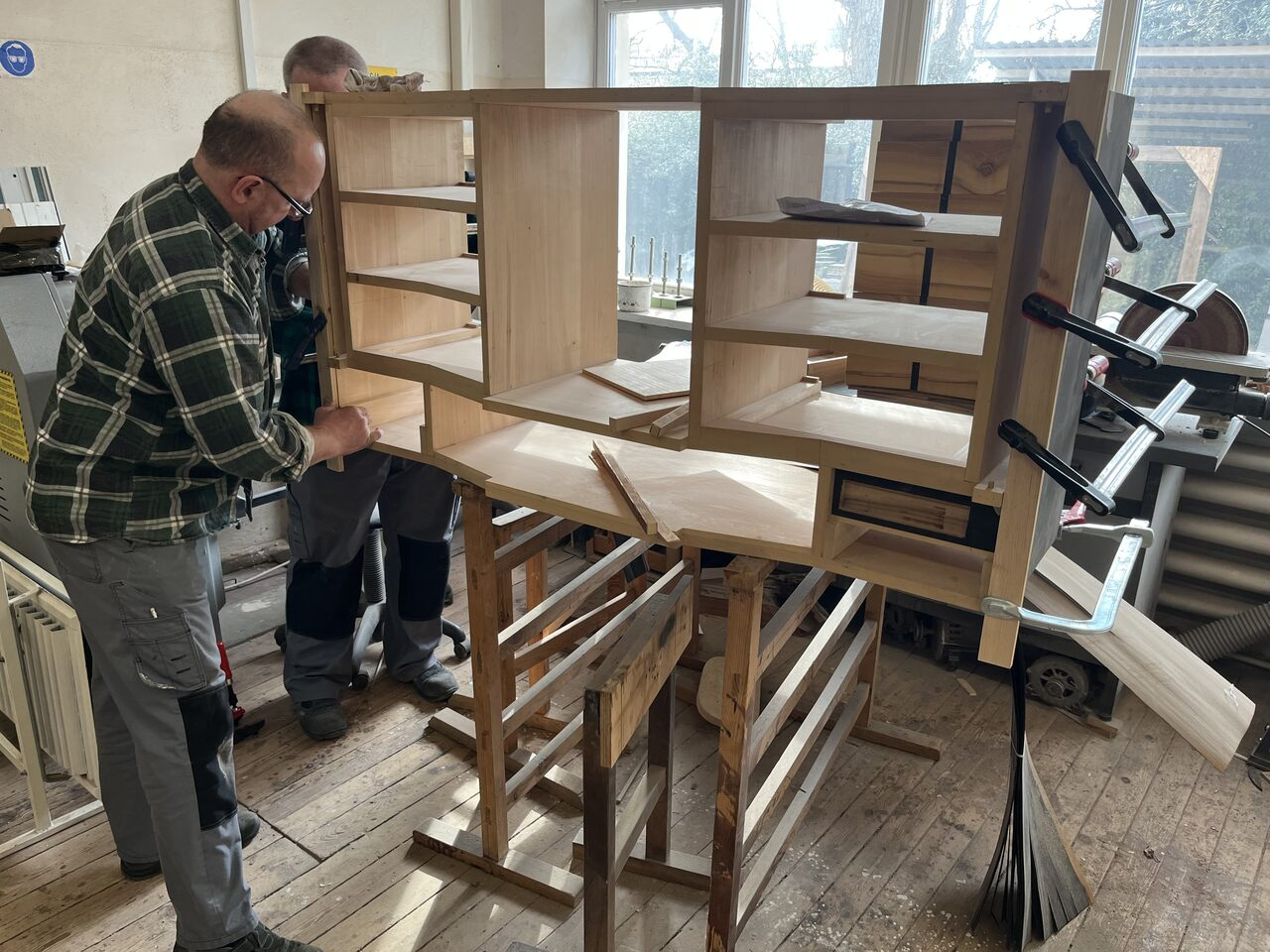 Założono, że wszystkie prace zostaną wykonane w oparciu o tradycyjne techniki stolarskie oraz materiały stosowane historycznie. Konstrukcję wykonano z drewna lipowego (jak w oryginale), a poszczególne elementy łączono z zastosowaniem tradycyjnych wczepów stolarskich, na tzw. jaskółczy ogon (wczep skośny). Do klejenia używano klejów glutynowych (klej stolarski zwany perełką) stosowanych na gorąco. Taki klej należy namoczyć w wodzie i podgrzać w kąpieli wodnej do odpowiedniej temperatury, tak aby uzyskać odpowiednią lepkość. Szuflady wykonano z drewna orzecha włoskiego. Ich konstrukcję czopowano stosując wczepy skośne półkryte (fronty) oraz wczepy skośne z tyłu szuflad.