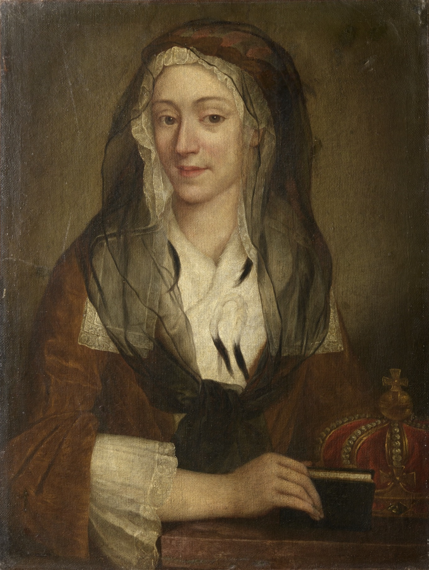 The present work is a late copy of a portrait which Clementina commissioned from Antonio David in 1727, but which differs significantly from earlier portrayals. Rich costumes and jewellery have been replaced by subdued tones, and the modest dress, dark veil, and prayer book symbolise piety and the renunciation of worldly goods.