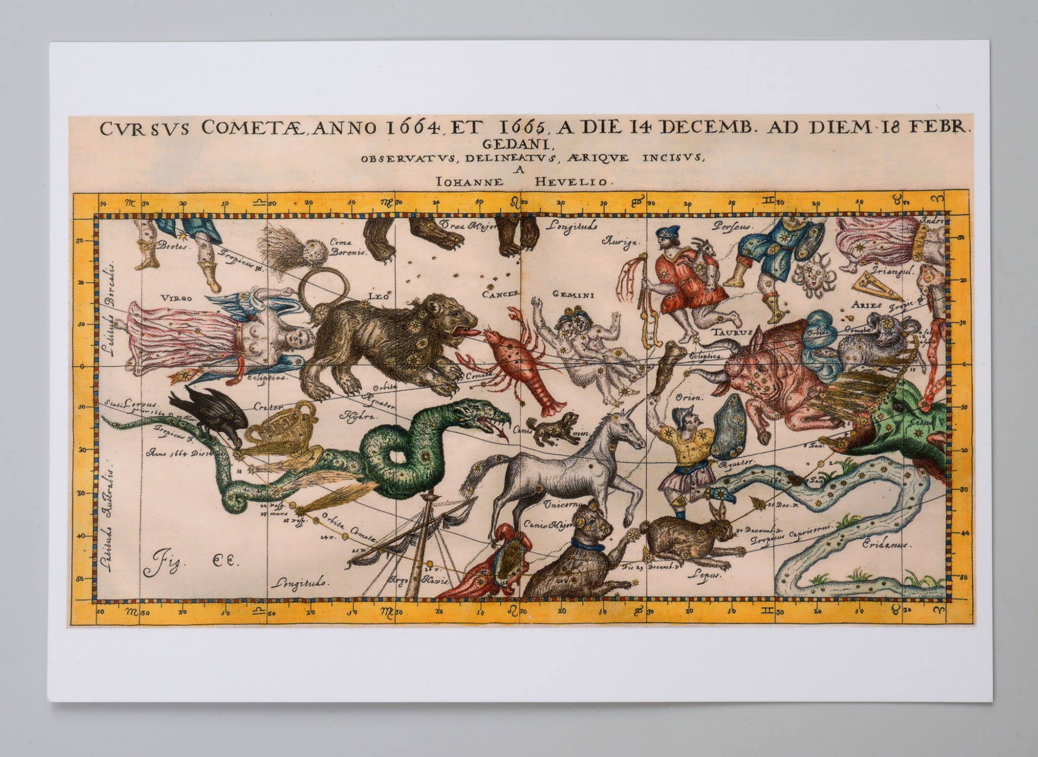 Jan Heweliusz, Machinae coelestis pars pasterior. Gdańsk, 1679. The flight path of the comet observed by Heweliusz at the turn of 1664 and 1665.