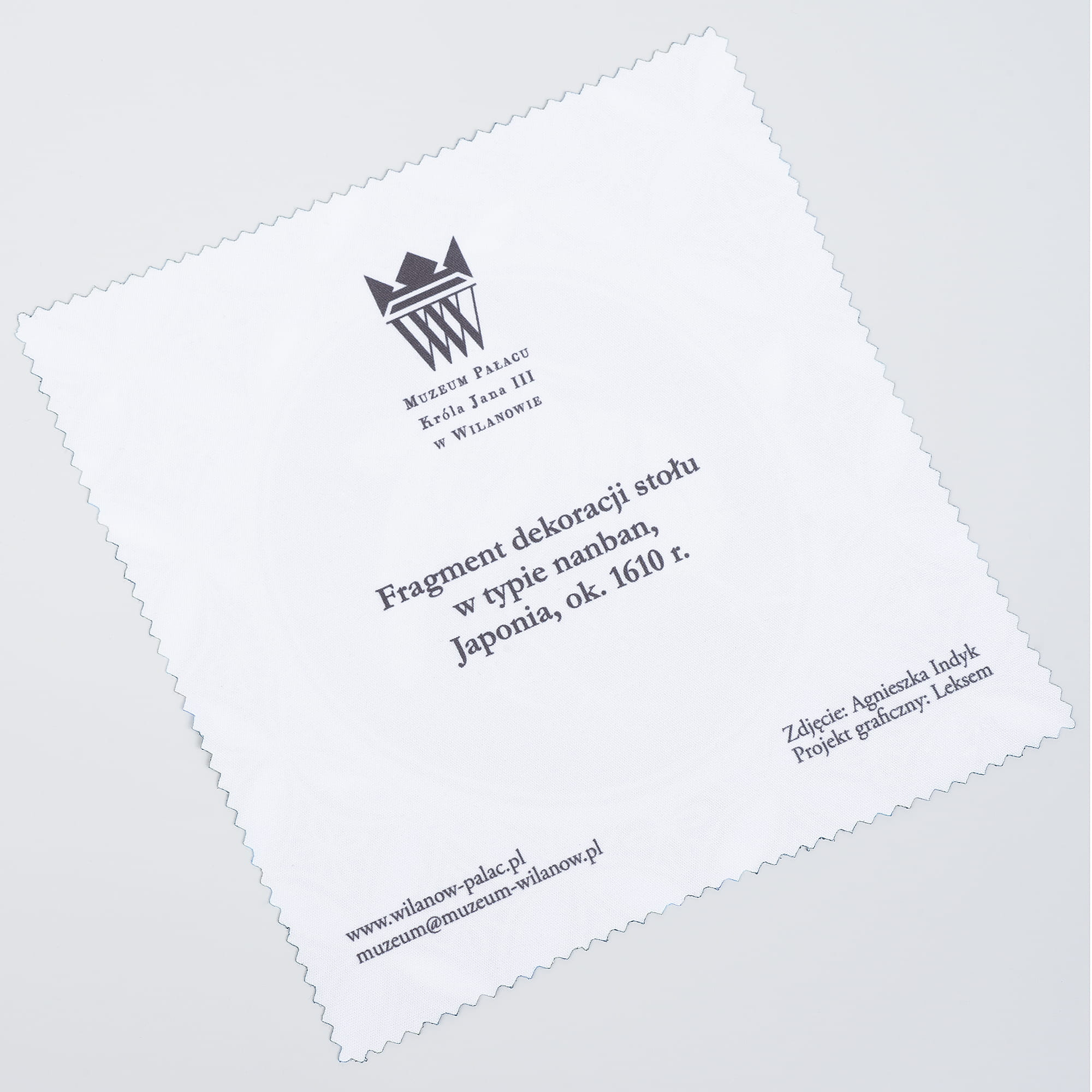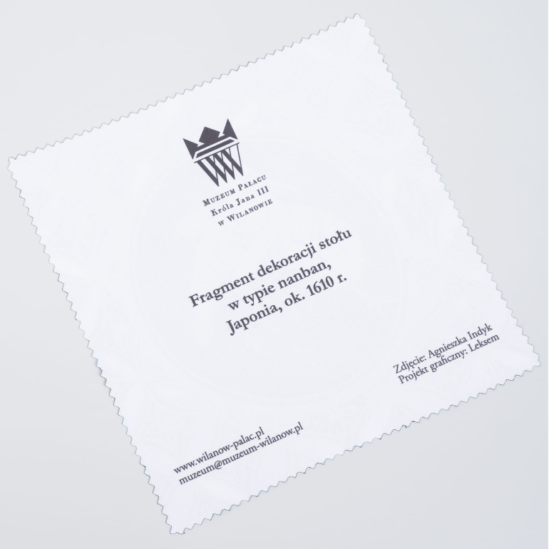 Spectacle cleaner made of microfibre with a fragment of Nanban table decoration, Japan, 1610.