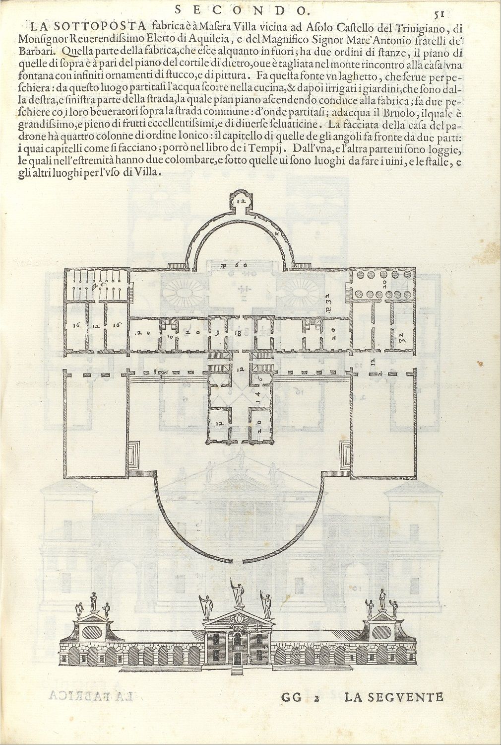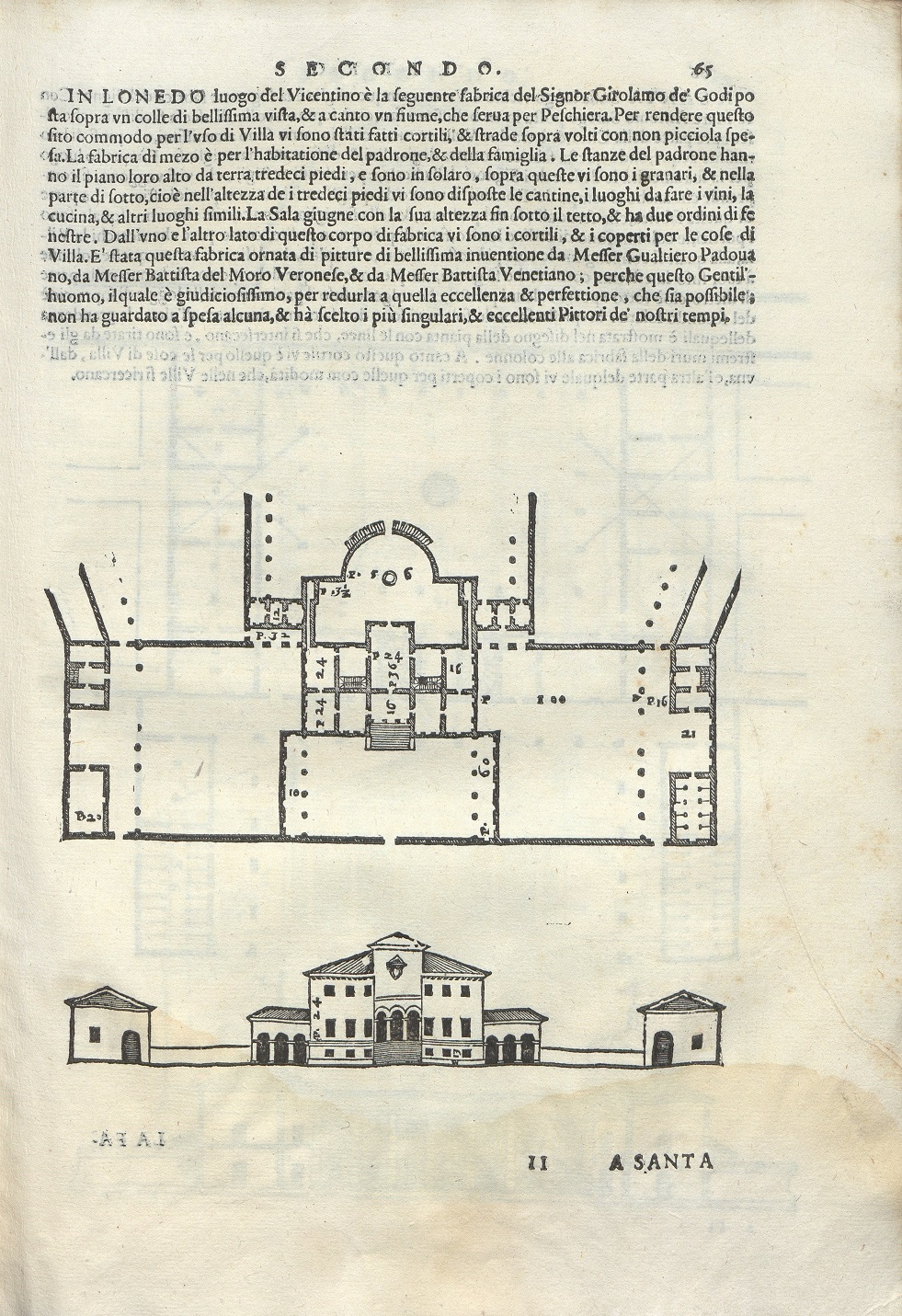 Andrea Palladio (właściwie Andrea di Pietro) urodził się w Padwie w 1508 roku i od trzynastego do trzydziestego roku życia zajmował się przede wszystkim kamieniarstwem i rzeźbiarstwem. W 1524 roku przeniósł się do Vicenzy, gdzie w 1538 roku rozpoczął współpracę z humanistą Gian Giorgio Trissinem, która umożliwiła mu w 1541 roku pierwszą podróż do Rzymu. Ta i kolejne dwie wizyty w Wiecznym Mieście ukształtowały poglądy Palladia na architekturę – wcześniej nie w pełni świadomy wielkiego znaczenia sztuki antycznej, w Rzymie zaczął studiować pozostałości starożytnych budowli. Palladio, podobnie jak wcześniej Biondio, w duchu humanizmu przygotował dwa przewodniki po Rzymie. Le antichità di Roma (Rzym 1554) zawierał opisy i historie rzymskich budowli, bo, jak pisał sam Palladio: „wielkim życzeniem wszystkich jest prawdziwe zrozumienie tych starożytności”. Drugi przewodnik skierowany był przede wszystkim do pielgrzymów i zawierał opisy rzymskich kościołów. Jego szczególną cechą było zwrócenie uwagi na sztukę jako czynnik ważny dla odbioru danej świątyni. W czasie pobytów w Rzymie Palladio tworzył rysunki, w których rekonstruował na podstawie detali i proporcji antyczne budowle. Przekonany o racjonalności i matematycznej równowadze antycznych budowli popełniał niekiedy błędy, jak na przykład w rekonstrukcji Bazyliki Maksencjusza, której nadał nigdy nieistniejący symetryczny plan. „Poprawianie” rzymskich budowli zdarzało mu się głównie dlatego, że starał się zawsze odnosić do starożytnych norm wywiedzionych z tekstu Witruwiusza. Między innymi dlatego I quattro libri było tak popularne wśród późniejszych architektów – dawało jasne rozwiązania wyrażające się w konkretnych proporcjach i matematycznych regułach. O zmianach zachodzących w architekturze na podstawie wywiedzionej z tradycji rzymskiej reguły symetryczności dobitnie świadczy porównanie planów dwóch renesansowych budynków: willi Farnesiny projektu Baldassare Peruzziego z lat 1509-1511 i willi Godi Porto Palladia z 1540 (il. 2). Symetrycznie ukształtowane fasady Farnesiny nie odpowiadają nieregularnym wnętrzom, w przeciwieństwie do projektu Palladia, w którym to układ pomieszczeń stanowi element decydujący o fasadzie.
