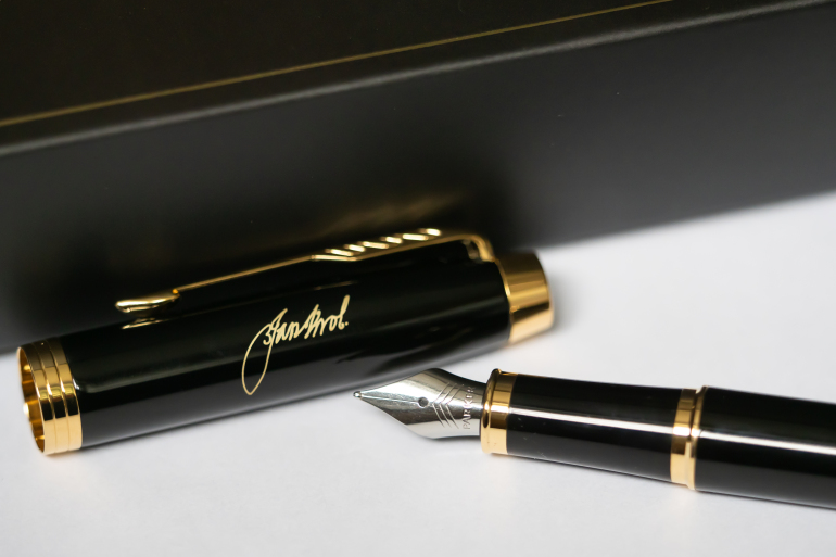 Najwyższej jakości pióro wieczne Parker IM z wygrawerowanym podpisem Króla Jana III. Stalówka została wykonana z trwałej stali nierdzewnej, całość dopracowana w każdym detalu, tak aby zapewnić wysoką jakość i wydajność podczas pisania.