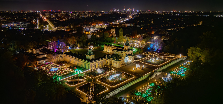 Na dziedzińcu głównym pałacu wilanowskiego zobaczymy kompozycje świetlne nawiązujące do życia Jana III – historii jego miłości do Marii Kazimiery, wojen oraz działań dyplomatycznych. To także znakomite scenerie do zrobienia pamiątkowych zdjęć na tle bajkowo oświetlonej rezydencji królewskiej.