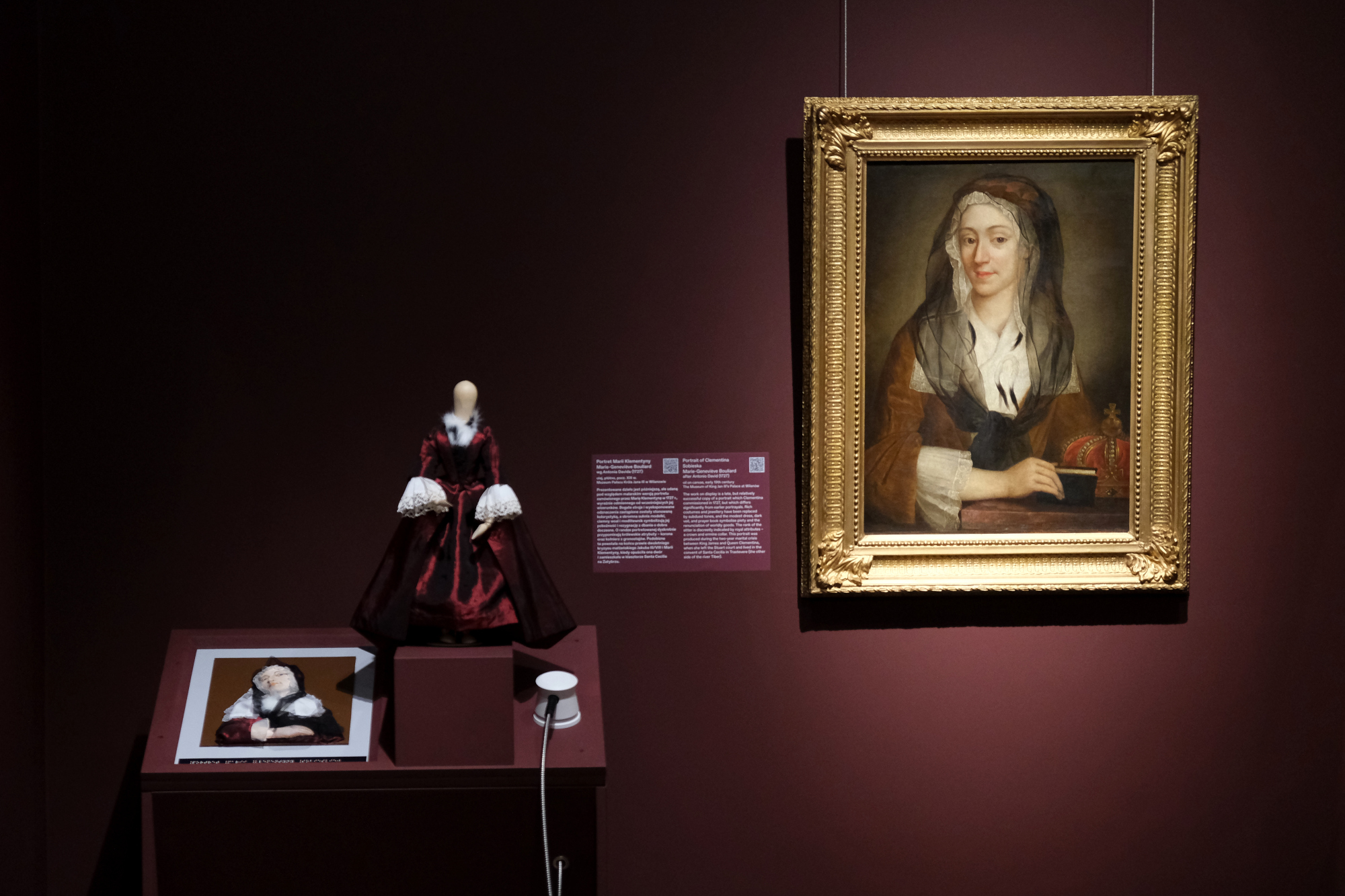 Rekonstrukcja sukni Marii Klementyny, na podstawie portretu autorstwa Williama Mosmana (1733):